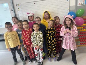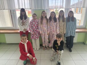 8 grudnia w naszej szkole odbył się wyjątkowy i pełen radości Dzień Piżamy, zorganizowany przez Samorząd Uczniowski. Tego dnia szkolne korytarze zamieniły się w kolorową i przytulną przestrzeń, wypełnioną miękkimi materiałami, pluszakami i – co najważniejsze – szerokimi uśmiechami uczniów i nauczycieli. Uczniowie przyszli do szkoły w swoich ulubionych piżamach, szlafrokach i kapciach, pokazując, że nauka może iść w parze z dobrą zabawą i kreatywnością. Atmosfera była niezwykle pozytywna – pełna śmiechu, integracji i wspólnej radości z bycia razem. To był dzień, który na długo pozostanie w naszej pamięci – nie tylko jako okazja do zabawy, ale też jako przypomnienie, że szkoła to miejsce, gdzie każdy może czuć się swobodnie i bezpiecznie. Dziękujemy wszystkim za zaangażowanie i wspólne świętowanie!