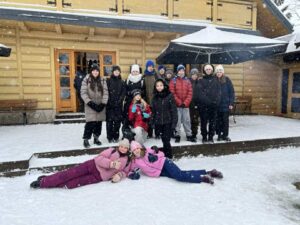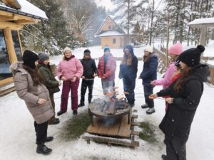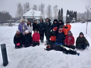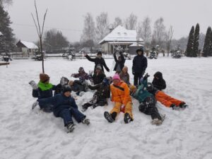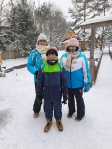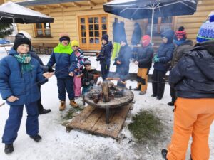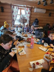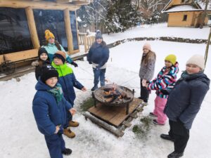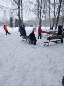 Po wspólnym posiłku nie zabrakło zabawy – dzieci rzucały się śnieżkami i korzystały z uroków zimy na świeżym powietrzu