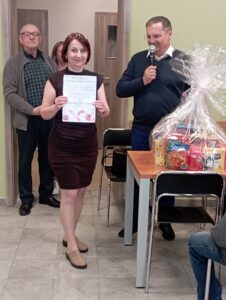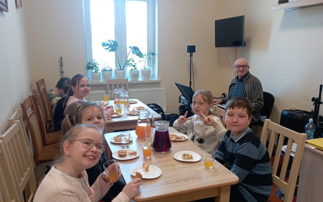 Wizyta odbyła się w ramach akcji „Herbatka dla Babci i Dziadka”, dlatego dzieci przywiozły również podarek zebrany podczas szkolnej zbiórki. Ten symboliczny prezent był wyrazem pamięci, życzliwości i wdzięczności dla starszego pokolenia.