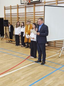Podczas uroczystości Pan Burmistrz i Pan Dyrektor wręczyli nagrody nauczycielom za wyróżniającą się pracę – dziękujemy wszystkim pedagogom za ich pasję, oddanie i codzienny trud. To był dzień pełen radości, wzruszeń i szkolnej wspólnoty.
